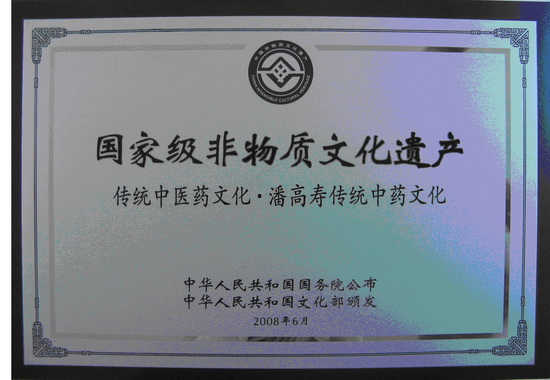 “潘高壽傳統(tǒng)中藥文化”國(guó)家級(jí)非物質(zhì)文化遺產(chǎn)標(biāo)牌