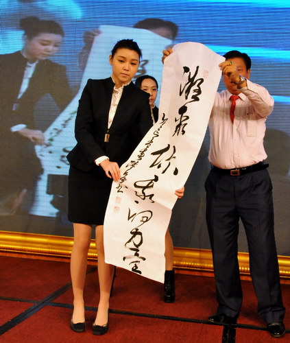 會上,番禺區委副書記、區長樓旭逵,番禺廠商會理事會副主席、會長王錦榮先后致詞,總結了會員企業過去一年在番禺區委、區政府的正確領導下,抓項目、調結構、興產業、促發展過程中所取得成績與經驗,同時勉勵各企業再接再勵,加快轉型升級,推進技術進步,為番禺區新型城市化建設,實現經濟的持續健康發展作出更大的貢獻。“凝聚你我的力量”番禺區廠商會理事會主席陳昌即席揮毫。言為心聲,代表了會員單位的決心和力量。