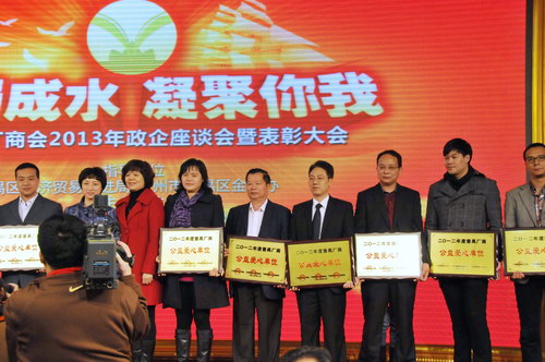 2月21日上午,由廣州市番禺區廠商會、廣州市番禺區企業聯合會、廣州市番禺區中小企業協會聯合主辦的主題為“萬涓成水 凝聚你我”的番禺廠商會2013年政企座談會暨表彰大會在番禺賓館隆重舉行。番禺區領導、各會員單位近千人歡聚一堂,同賀新春,共謀發展。