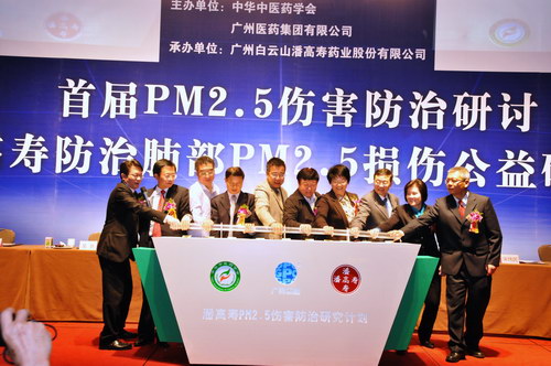 在研討會上,廣藥集團旗下骨干企業(yè)潘高壽成立了國內(nèi)首個專門用于資助PM2.5傷害防治的基金——廣藥潘高壽“綠肺基金”,并與復(fù)旦大學公共衛(wèi)生學院聯(lián)合啟動了首個PM2.5傷害防治研究項目,開中醫(yī)藥領(lǐng)域?qū)?SPAN lang=EN-US>PM2.5傷害的防護與治療課題先河,可望為社會公眾防治PM2.5危害開辟新途徑、尋找新方法。