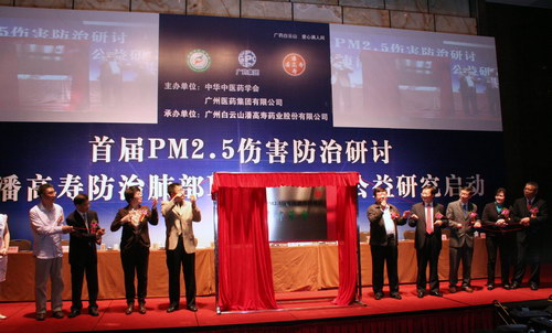 國內(nèi)首個專門用于資助PM2.5傷害防治的基金——廣藥潘高壽“綠肺基金”揭幕儀式