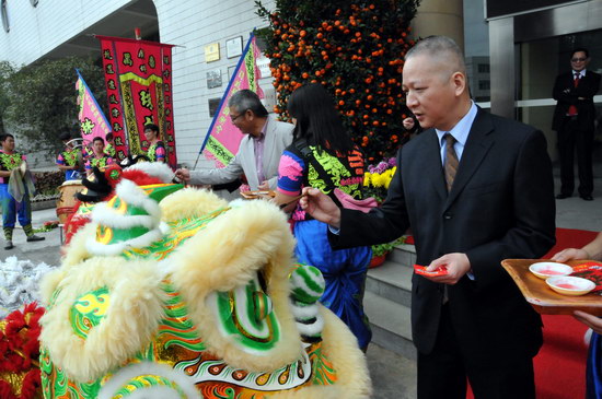 隨后,領導向員工派發了開門利是,并與全體員工一同欣賞了一場惟妙惟肖的醒獅表演。場面熱鬧,喜慶吉祥,寓意潘高壽在新的一年生意興隆,業務蒸蒸日上,勇攀高峰。
