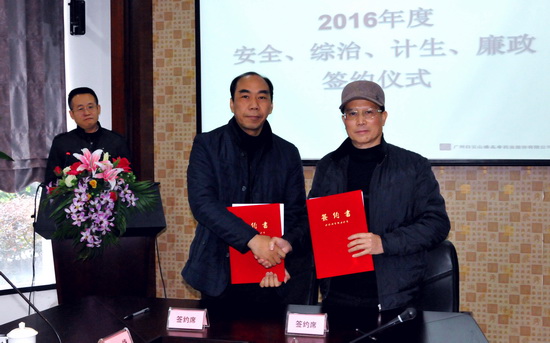 梁書記和生產總監葉耀成進行安全、綜治簽約