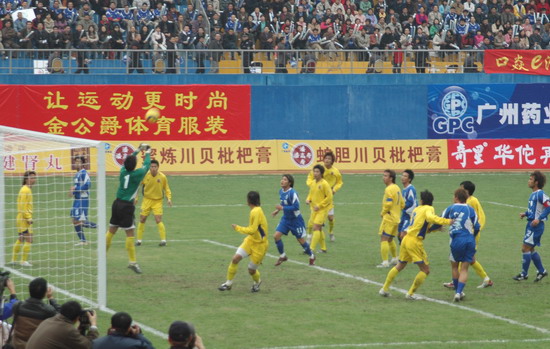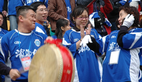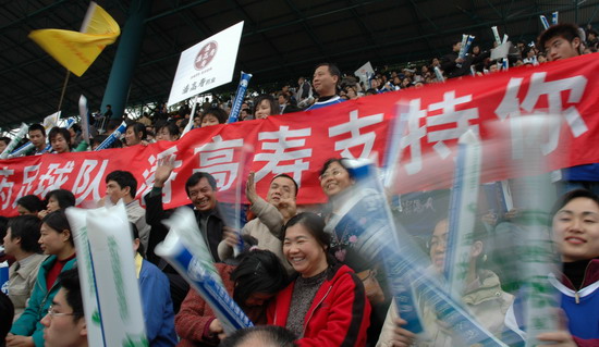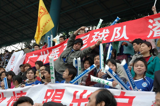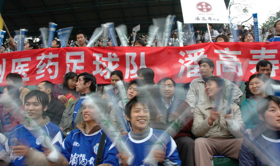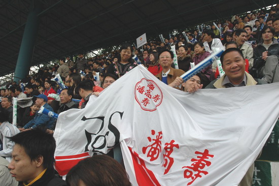 “燃燒你的激情,踢出你的自信”潘高壽藥業(yè)300名球迷打出的橫幅頗有氣勢。恰與球場火熱的氣氛相互應(yīng),其時,球場翻騰著一片藍(lán)色的海洋(球迷們齊齊身穿獲贈的廣藥隊新賽季藍(lán)色球衣)。廣藥集團(tuán)下屬近20家企業(yè)各組團(tuán)的啦啦隊各自各威風(fēng),齊為主隊喝彩。只見手握充氣棒,相互敲打,搖旗吶喊聲不絕于耳……。廣藥集團(tuán)對這場球賽相當(dāng)重視,包括楊榮明董事長在內(nèi)的多個高層領(lǐng)導(dǎo)親臨觀戰(zhàn)。“廣州足球今年開了個好頭”賽后廣藥俱樂部麥奇杰總經(jīng)理喜形于色。而僅執(zhí)掌穗足主帥教鞭18天的戚務(wù)生對這場“處子秀”評價道:“結(jié)果是可以令人接受的……。這場球賽勝利的意義在于,它讓球員們更好地在中甲聯(lián)賽正式開打前期找到比賽的感覺”。