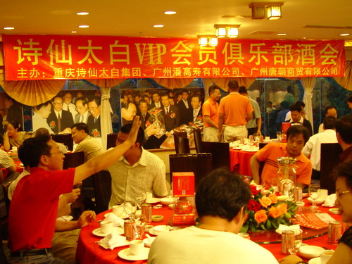 中秋、國慶來臨之際,我司與重慶詩仙太白集團、廣州唐朝商貿有限公司在風光秀麗的珠江之畔舉行“詩仙太白VIP會員俱樂部酒會”。這是我司屬下“廣州潘高壽天然保健品公司”作為名酒“詩仙太白”華南地區總代理后的又一大型推介活動。酒會邀請了珠三角地區的酒業重點商業客戶代表、專職公務接待人員和社會名流近200人參加。