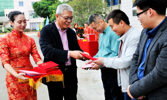 儀式上,紀(jì)委書(shū)記、工會(huì)主席張奇志宣讀了《關(guān)于表彰2016-2017年度潘高壽之星的決定》。公司領(lǐng)導(dǎo)向榮獲“生產(chǎn)之星”、“服務(wù)之星”、“營(yíng)銷(xiāo)之星”、“科技質(zhì)量之星”、“管理之星”和“外來(lái)服務(wù)之星”的30優(yōu)秀員工頒獎(jiǎng),并號(hào)召全體員工弘揚(yáng)工匠精神,以更加務(wù)實(shí)的態(tài)度、更加勤勉的作風(fēng),再創(chuàng)佳績(jī)。