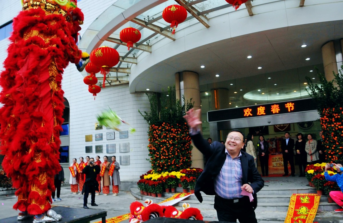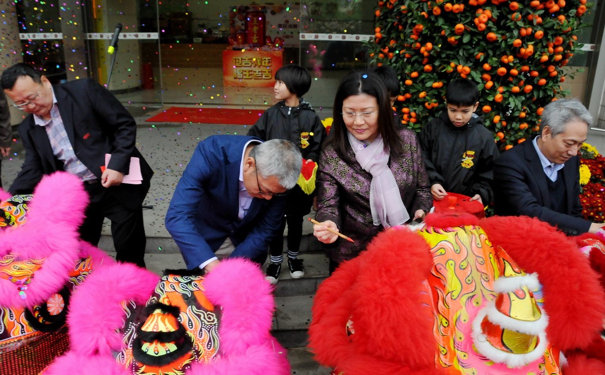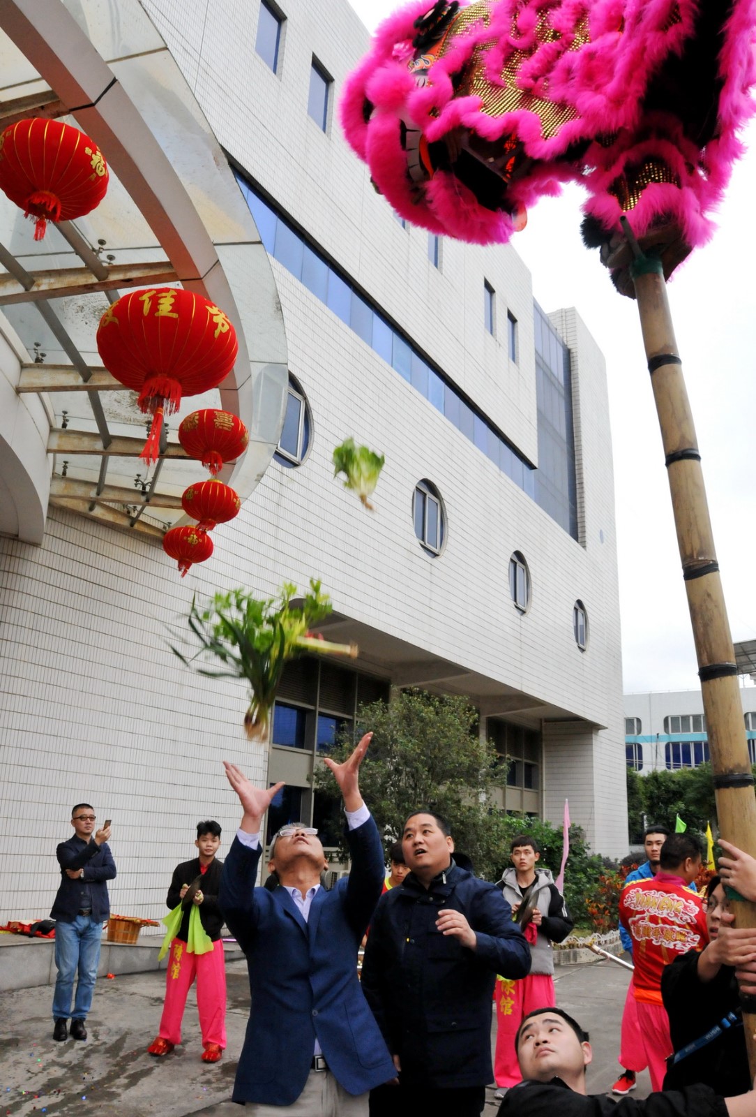 靈犬獻(xiàn)瑞,醒獅拜年!2月22日戊戌狗年大年初七,潘高壽在綜合大樓前廣場舉行簡單而歡樂祥和的2018年新春開工儀式。公司班子成員為醒獅點睛,在歡快的鑼鼓聲中,醒獅歡騰起舞、采青拜年送祝福,博得員工陣陣掌聲。廣藥集團(tuán)副總經(jīng)理程寧及相關(guān)部室領(lǐng)導(dǎo)出席共賀開工大吉。儀式由公司黨委書記蘇廣豐主持。