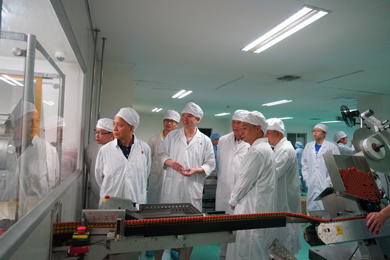 商會代表們走進潘高壽企業文化室,感受潘高壽百年歷史,和 “積功累德,濟人濟世”的文化底蘊;來到生產車間、中心檢驗室,了解藥品生產工藝和產品質量管理。