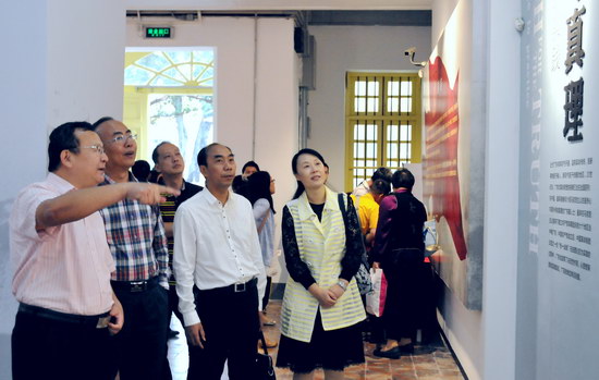 為慶祝中國共產(chǎn)黨成立95周年,一個題為“南粵沃土鑄偉業(yè)”的專題展在廣州起義紀(jì)念館展出。2017年11月2日下午,由白云山潘高壽黨委組織,黨委書記蘇廣豐、紀(jì)委書記張奇志領(lǐng)隊的黨員一行20多人前往該館參觀了展覽。