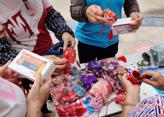 農(nóng)歷五月初五是中國的傳統(tǒng)節(jié)日——端午節(jié),有掛菖蒲、賽龍舟、吃粽子、飲雄黃、佩香囊等節(jié)日習俗,為了增進市民群眾對中國傳統(tǒng)節(jié)日文化的了解,充分感受這個節(jié)日所蘊含的民族情懷,營銷黨支部三個在營銷一線的黨小組帶領潘高壽綠肺基金的志愿者們走進社區(qū),攜手戰(zhàn)略合作連鎖藥店的藥師,手把手教導市民如何制作防疫香囊,體驗傳統(tǒng)中醫(yī)藥文化的魅力。